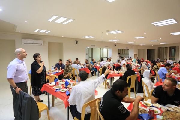 نابلس :- نظمت لجنة العاملين في المستشفى الانجيلي العربي بنابلس افطارا جماعيا للعاملين في المؤسسة حضرة مدير عام المستشفى د. وليد سابا القرة وجميع العاملين والذي يمثلون كل اقسام المستشفى من اداريين واطباء وتمريض وفنيين ومهن طبية مساندة وعلاقات عامه وقسم المحاسبة والخدمات العامة وشارك في الافطار ايضا موظفي عيادة الزبابدة التابعه للمستشفى وطاقم الامن في المستشفى (بال سيف).