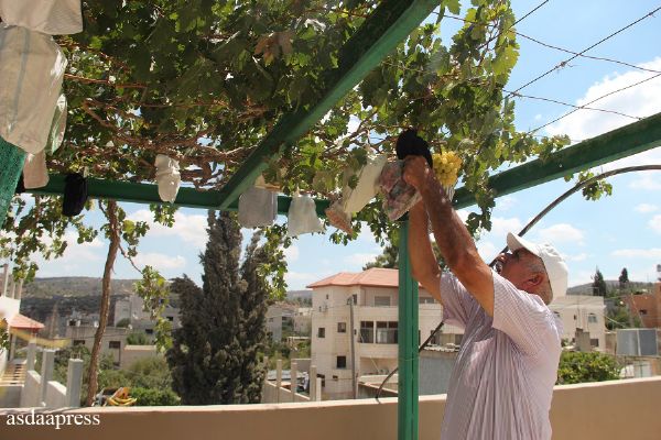 أصداء- ساجدة أبو حمدان- يتجول الحاج معروف فرحات ذو الـ(65عاما) بين أشجاره في حديقته المنزلية الكبيرة، الكائنة في بلدة بيتا جنوب نابلس، يمتع عينيه بالنظر إلى ما زرعته يداه وتعبت عليه أنامله، حيث تنتشر 11 شجرة عنب زرعها فرحات واعتنى بها كطفل طغير حتى كبرت وأينعت ودرت عليه عنبا وورقا أكل منه وعائلته، واستغل ما زاد عن حاجته ليبيعه ويعتاش من ثمنه.