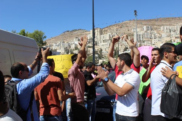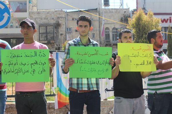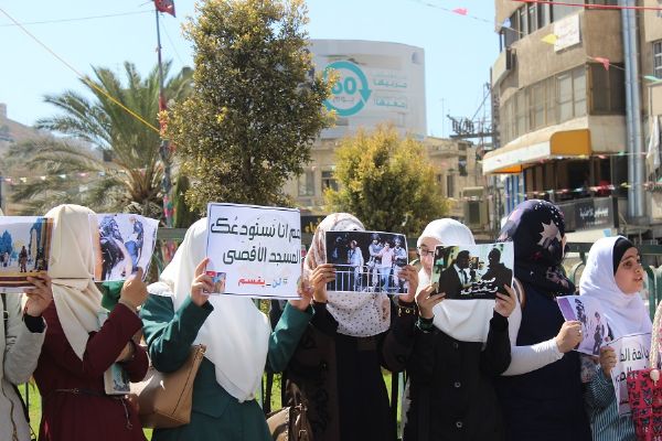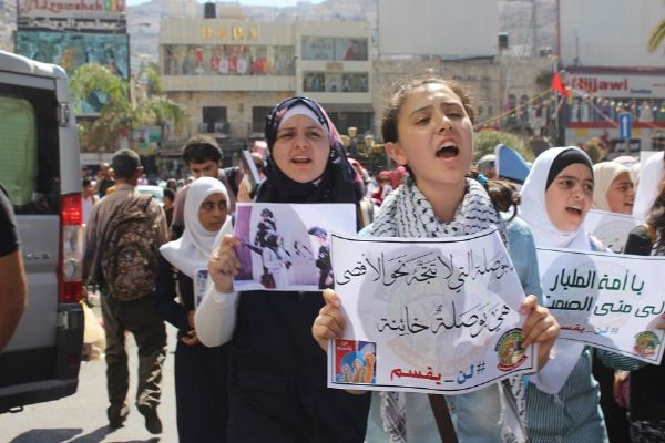نابلس- أماني شحادة- شارك عشرات الفلسطنيين، اليوم الخميس، في سلسة بشرية من أجل نصرة المسجد الأقصى على دوار الشهداء بمدينة نابلس، والتي كان قد كانت قد تمت الدعوة لها عبر مواقع التواصل الاجتماعي، للتعبير عن الغضب والرفض لما يحدث من هجمة شرسة على المسجد الأقصى لتقسيمه زمانياً ومكانياً.