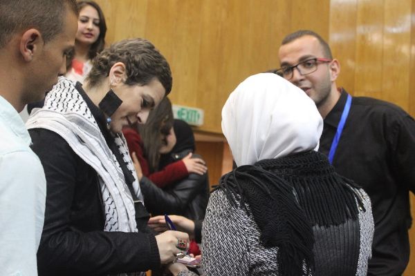 أصداء- إسراء غوراني- التقت الفنانة ريم البنا، اليوم الأحد، مع المئات من طلبة جامعة النجاح الوطنية، ضمن لقاء تفاعلي نظمته مجموعة "النجاح توك" تحت عنوان: "رحلة امرأة مكافحة"، والذي عقد في مدرجات الشهيد ظافر المصري بالحرم الجامعي القديم.