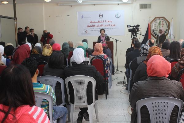 واشار سعد الى ان مساعي النقابات الفلسطينية ليس الحد الادنى الحالي بل اكثر من ذلك اعتمادا على مستوى خط الفقر، وبالتالي عدم تطبيق هذا الحد يعد انتهاكا لحق العاملين وعلى الاخص المرأة التي تعمل في بعض القطاعات بمبالغ تصل الى 700 شيكل شهريا.