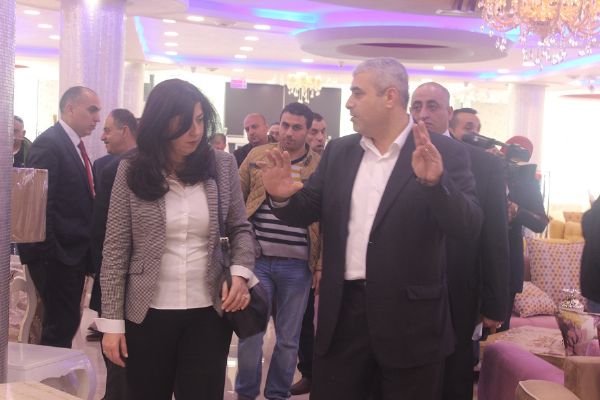 وتم استقبال الوزيرة والوفد المرافق من قبل المدير العام للشركة فراس قتلوني وإخوانه، والطاقم الإداري، إضافة إلى مجموعة من الإعلاميين الفلسطينيين والمدير التنفيذي لشركة ديارنا لإدارة الحدث ادهم خروبي.