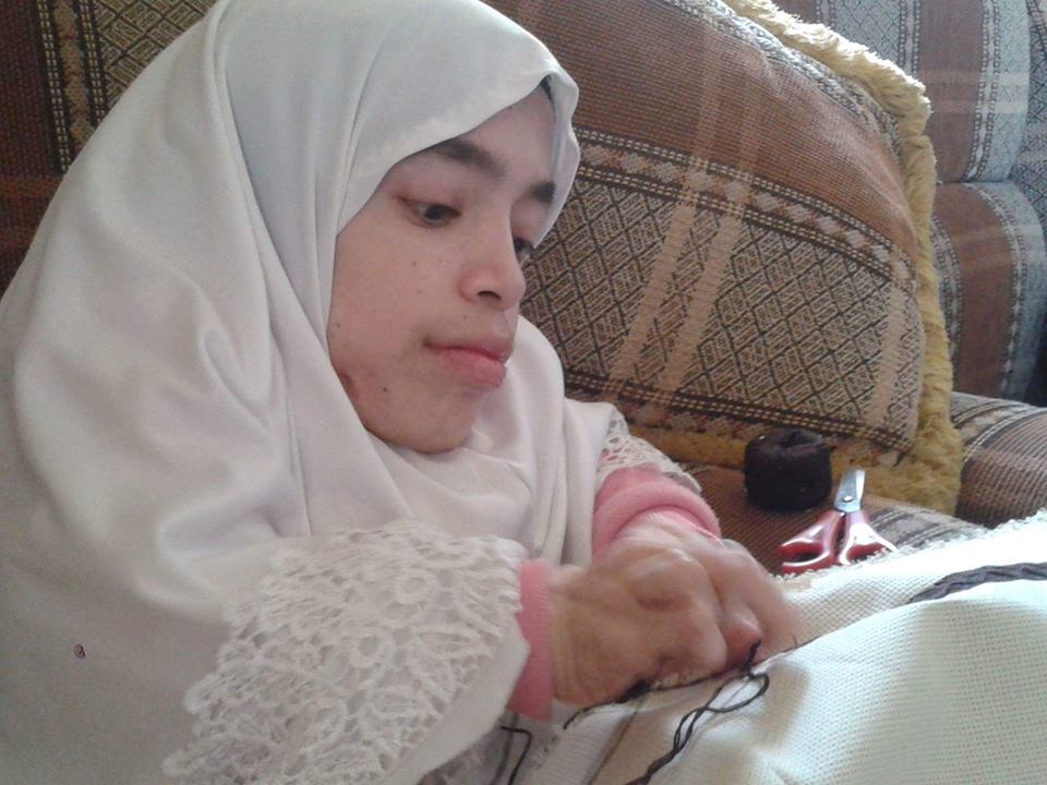 من بين الأشقاء الثلاثة، سلسبيل ذات السابعة والعشرين عاماً لم تمنعها إصابتها بالمرض وحركتها البطيئة من ممارسةِ شغفها بفنها الدفين، لتطلق العنان بخيالها من اللوحات الفنية والتطريز، فتقول" أني متأملة بالخروجِ يوماً ولو على كرسي متحرك يساعدني في التنقل، لأكمل مشروعي التعليمي والفني، الذي لطالما حلمتُ بهما".