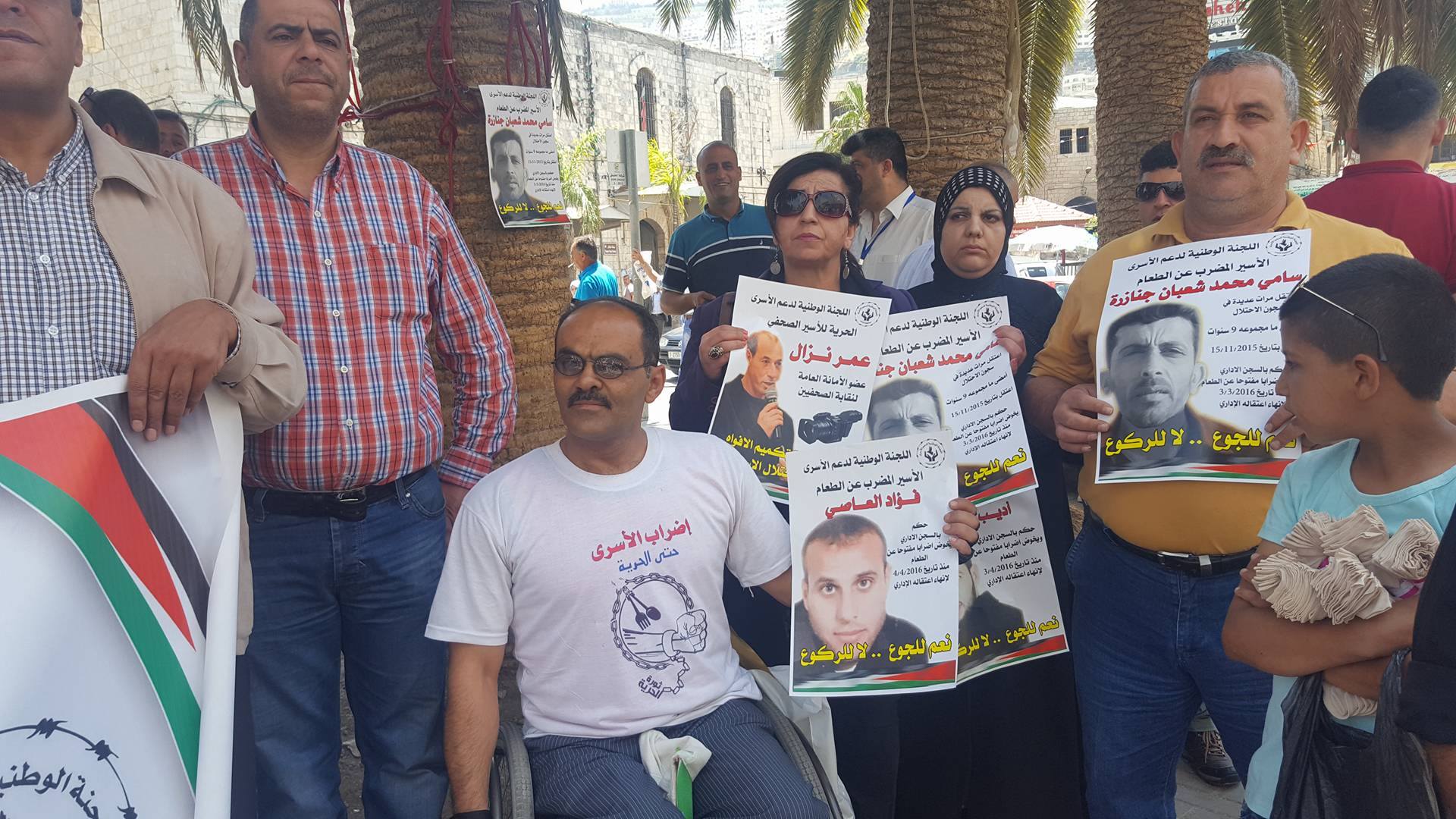 نابلس-أصداء- نظمت اللجنة الوطنية لدعم الأسرى، ظهر اليوم الاثنين، وقفة تضامنية مع الأسير سامي جنازرة المضرب عن الطعام لليوم الثامن والخمسين والأسرى المضربين عن الطعام.