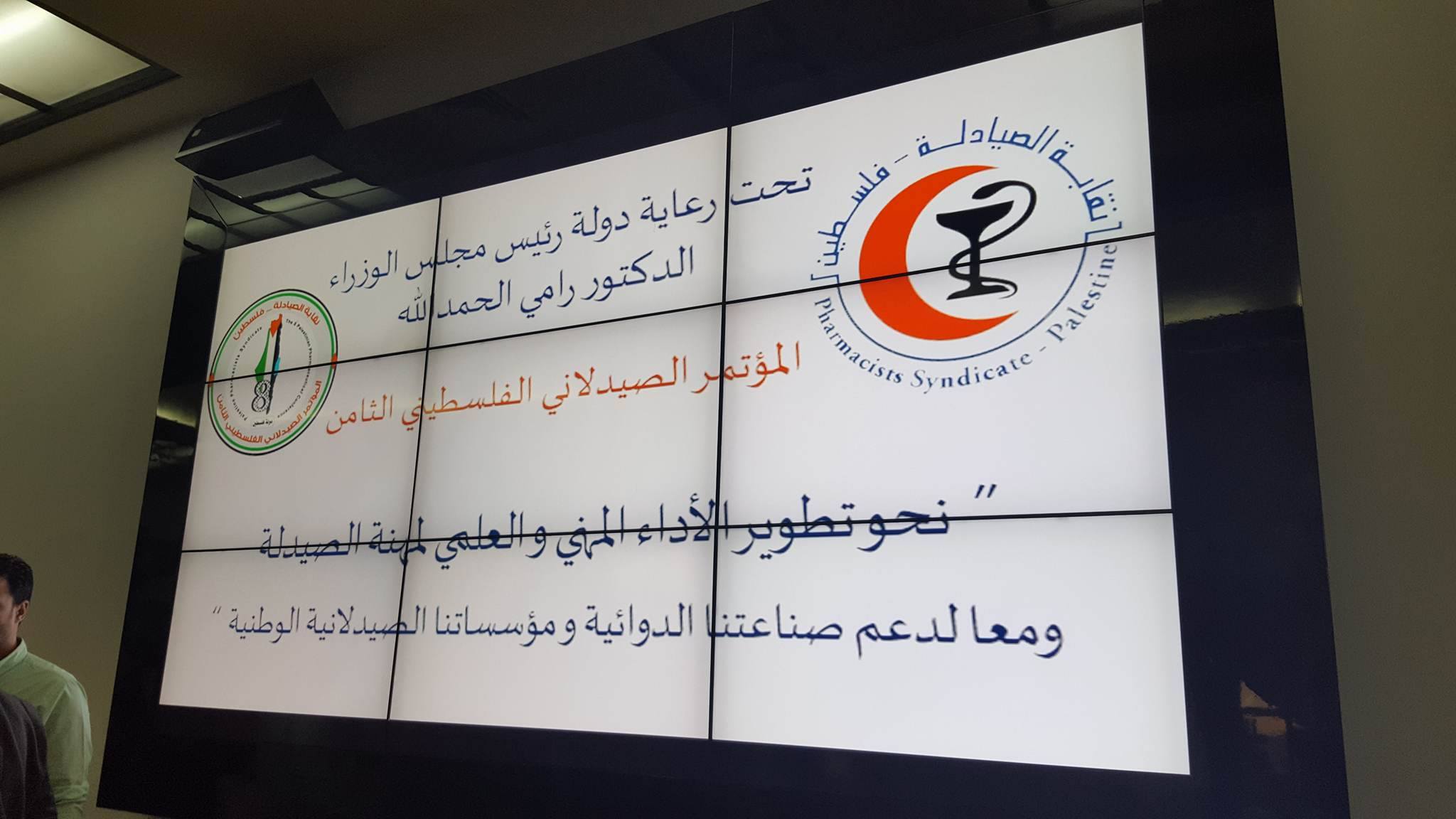 رام الله-أصداء- عقدت نقابة الصيادلة، اليوم الثلاثاء، مؤتمرها الثامن بمشاركة 1000 صيدلاني وصيدلانية من مختلف محافظات الوطن، وحضر الافتتاح رئيس الوزراء الدكتور رامي الحمدلله، وزير البيئة الأردني طاهر الشخشير، ومحافظ رام الله والبيرة ليلى غنام، ووزير الصحة جواد عواد، ونقيب الصيادلة أيمن خماش، وعدد من الوزراء والشخصيات الرسمية والاعتبارية.