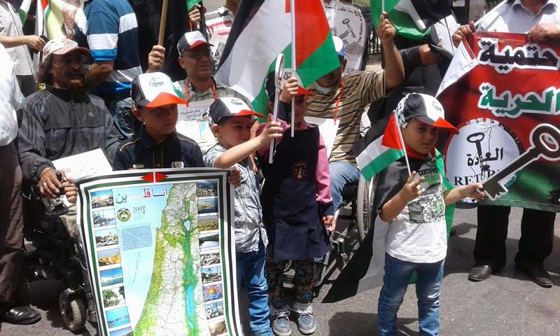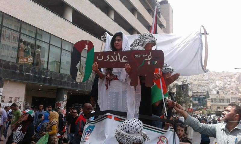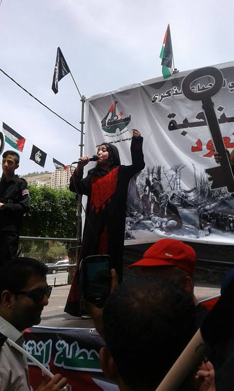 من جهته أكّد خالد منصور عضو حزب الشعب الفلسطيني أنّ في مثل هذا اليوم الذي خرجت عائلته من بلدته أم الزينات على جبل الكرمل في منطقة حيفا وبدأت رحلة اللجوء والحسرات في مخيمات اللجوء، ونوّه أنّ "لنا حق ومطلب في العودة ونحن هنا كي نرفع بالصوت العالي "بدنا نعود بدنا نعود، بالحوار بالبارود، اسمعونا يا يهود، صبر الشعب إله حدود".