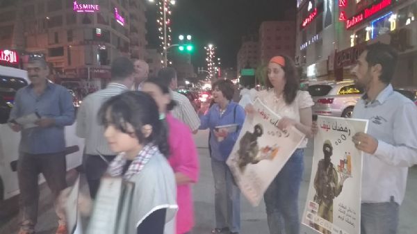 نظمت اللجنة الشعبة للمقاطعة في محافظة نابلس يوم الخميس بعد الافطار حملة تعبوية تحريضية للمقاطعة في شوارع مدينة نابلس وقد ابتدعت اسلوب جديد في الدعوة للمقاطعة وتوعية الجمهور فبالاضافة الى قيام المشاركين بتوزيع البوسترات والمنشورات استخدموا اسلوب المسحراتي الذي يحمل الطبل ويوجه النداء للناس للالتزام بالمقاطعة وسار ( مسحراتي المقاطعة ) في الشارع الرئيسي بحي رفيديا احد اهم احياء مدينة نابلس والذي يكتظ بالعادة بالمواطنين بعد الافطار وسار حوله المشاركون واوصل رسالة المقاطعة من خلال النداءات للناس وتذكيرهم بان المقاطعة واجب ديني ووطني واخلاقي الامر الذي لفت انظار الجمهور وجعله يقف ليشاهد هذا الاسلوب الجديد بالعمل التعبوي الوطني ويتسمع للكلمات الموزونة التي يرددها المسحراتي.