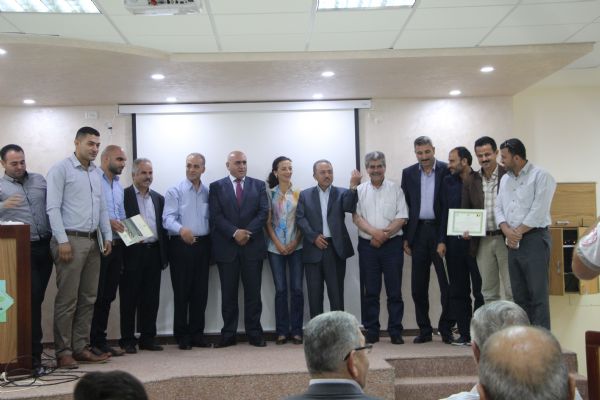 وفي نهاية الورشة تم توزيع أجهزة الكمبيوتر على رؤساء البلديات( عقربا، بيت فوريك، بيت دجن، كما تم تكريم المتدربين الذين شاركوا في دورة استخدام المعدات وتوثيق الانتهاكات الإسرائيلية التي نظمها مركز أبحاث الأراضي.