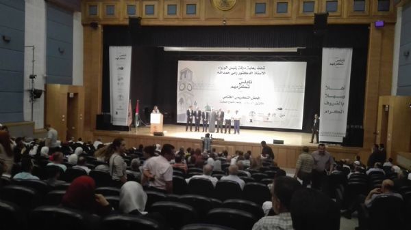 نابلس:أصداء- في اجواء احتفالية غلب عليها البعد الوطني والمجتمعي اقيم على مسرح الامير تركي بجامعة النجاح مهرجان (نابلس تكرمهم) والذي بارت اليه شركة ديارنا بنسخته الثانية تحت رعاية رئيس الوزراء الدكتور رامي حمد الله وبحضور محافظ نابلس اللواء اكرم الرجوب وممثلي الفعاليات الرسمية والاجتماعية والشعبية في المحافظة, وبدأ الحفل بالسلام الوطني الفلسطيني ثم تلاوة عطرة من الكريم اعقبها كلمة من عضو لجنة الاشراف على المهرجان تيسير نصر الله الذي شدد على اهمية هذه الفكرة والمبادرة التي تعمق الجانب الايجابي في المحافظة وتعزز من النظرة نحو الابداع والتميز وابراز الطاقات الابداعية وتدعيمها عبر تكريمها حتى في ظل وجودهم احياء. وقال ان الفكرة يجب ان تبقى وان تعزز من اجل ان تكون بذرة الخير والعطاء حاضرة في اذهان الاجيال الناشئة.