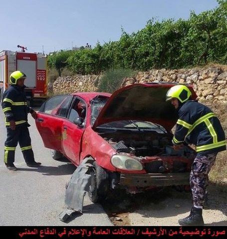 طولكرم : 6/8/2016 : إنتشلت وأنقذت طواقم الدفاع المدني في محافظة طولكرم اليوم السبت 6/8/2016 ، مسنة فارق الحياة وثلاثة إصابات في حادث سر إصطدام مركبة بصخرة قرب مفرق بلدة بلعا شرق طولكرم .