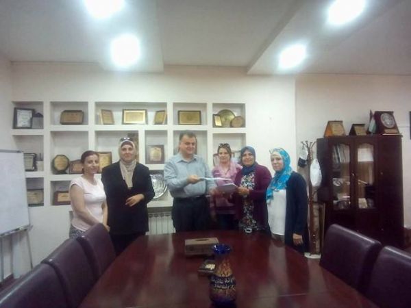 وحضر التوقيع كل من الأمين العام شاهر سعد وعائشة حموضة مسئولة دائرة المرأة في الاتحاد وغاده ابو غليون منسقة مشروع البتروكيماويات وجويرية منسقة دائرة في محافظة المرأة ونادية شحادة مديرة جمعية مدرسة الأمهات وشهيرة بلبيسي منسقة المشروع في جمعية مدرسة الامهات.