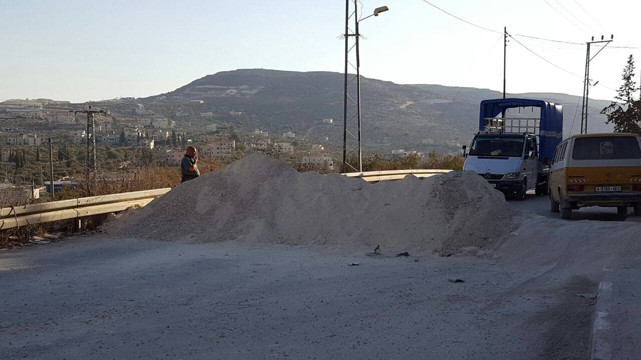 نابلس-أصداء- أغلقت قوات الاحتلال الإسرائيلي، عصر اليوم الأحد، طريق اودلا - حوارة جنوبي نابلس بالمكعبات الإسمنتية والسواتر الترابية.