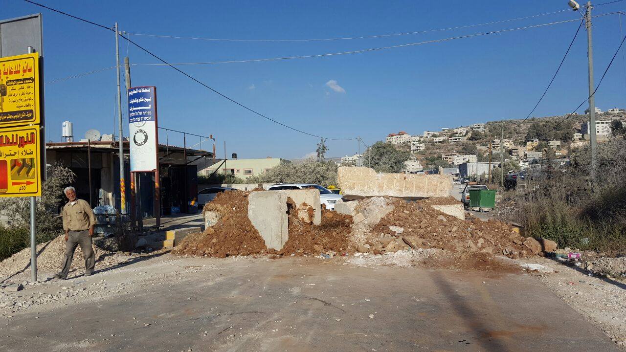 وقالت مصادر محلية ان جرافة عسكرية إسرائيلية ترافقها عدد من الدوريات العسكرية الإسرائيلية قامت بإغلاق طريق اودلا - نابلس بالسواتر الترابية والمكعبات الإسمنتية، ومنعت المواطنين بشكل كامل من المرور عبر الطريق، بحجة رشق سيارات المستوطنين بالحجارة، كما اغلقت المدخل الرئيس لبدة بيتا شرق نابلس.