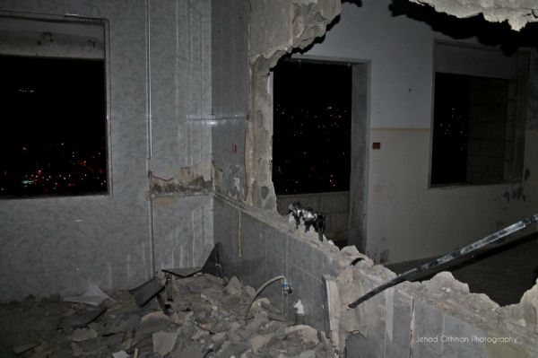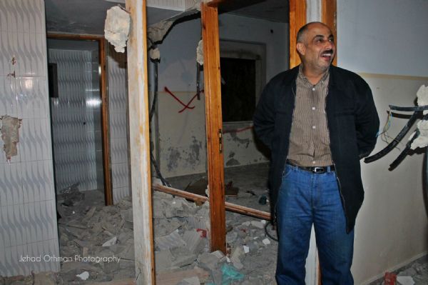 وتمت عملية الهدم بواسطة معدات خاصة دون استخدام مواد التفجير . وقال وجدي عليوي شقيق الاسير ان مئات الجنود حاصرو المنزل ووصلوا عبر الجبل الشمالي ثم اجبروا الجميع على البقاء بغرفة واحدة ثم شرعوا بعملية الهدم. واضاف ان المنزل التي تم هدمه 10 انفار وهم الان مشردين دون مأوى.