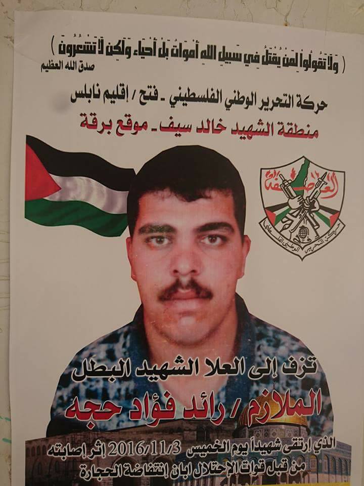 نابلس- أصداء- شيع ظهر اليوم الجمعة أهالي قرية برقة شمال نابلس جثمان الشهيد رائد حجي والذي استشهد مساء أمس الخميس متأثرا بجروح أصيب بها عام 2002.