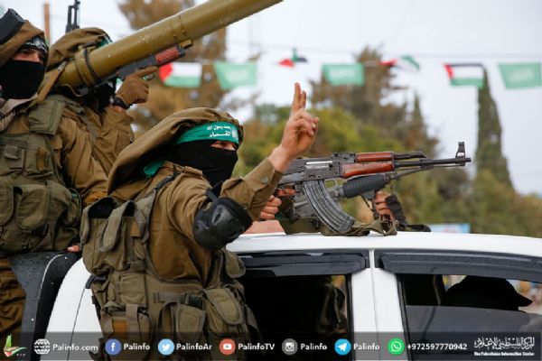 شارك العشرات من عناصر كتائب الشهيد عز الدين القسام، الجناح العسكري لحركة "حماس" في عرض عسكري شمال قطاع غزة؛ ضمن فعاليات ذكرى انطلاقة حركة "حماس".