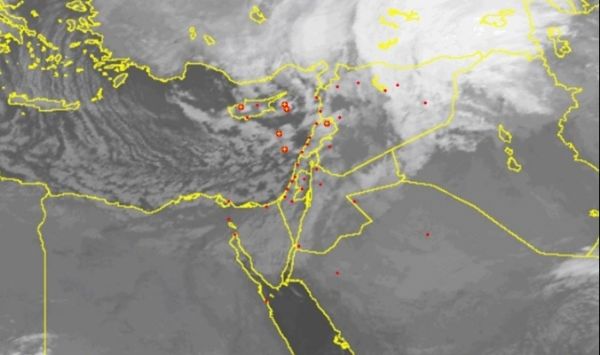 أظهرت آخر صور الأقمار الصناعية تدفق المزيد من السحب الماطرة صوب سواحل فلسطين والمدن الفلسطينية عبر شرق البحر المتوسط ، نتيجة لمنخفض جوي عميق يتمركز حالياً فوق الساحل السوري ، ومن المتوقع أن يعبر الى الشرق في الساعات القادمة .