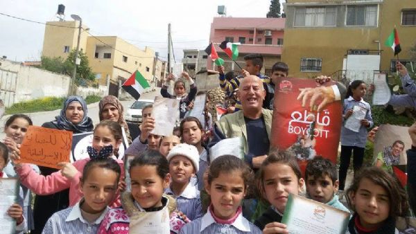 وتحلق التلاميذ حول خالد منصور - منسق الحملة الشعبية لمقاطعة البضائع الإسرائيلية، حاملين لافتات المقاطعة وأعلام الوطن ويتوقفون عند كل دكان ويوقفون كل مواطن يجدوه بالشارع كل سيارة تمر بهم ويتنافسون من الذي سينقل رسالة المقاطعة ويبلغ الأهالي بضرورة مقاطعة البضائع الإسرائيلية والانحياز للبضائع الوطنية .. وبلغتهم البسيطة كانوا يحاورون الناس قائلين : إحنا فلسطينية وعيب وعار علينا نشتري بضائع إسرائيلية بضائع اللي بقتلو أطفالنا ونساءنا وشيوخنا .. دخلوا محلات البقالة والمكتبات والصيدليات والمطاعم وتحدثوا مع ربات البيوت على مداخل منازلهن .. وهتفوا مع خالد منصور بصوت عال وجميل ( فلسطين بنحبك .. بدنا نقاطع عدوك – بدنا نقاطع يفلسطين .. منتوجات المحتلين -- عيب وعار علينا .. نفيد الغاصب بيدينا – يلي بدك لاستقلال .. قاوم قاطع لاحتلال ).