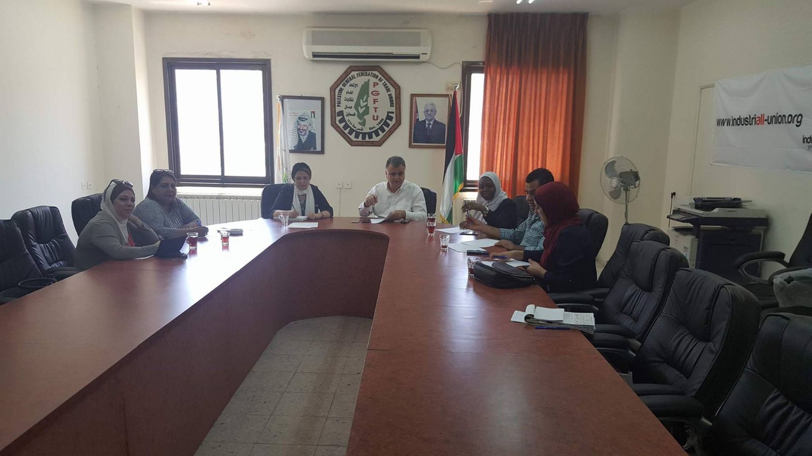 عقد اليوم اجتماع لدائرة الحد الأدنى الأجور وغلاء المعيشة في مقر الاتحاد العام النقابة عمال فلسطين، بحضور الأمين العام شاهر سعد ومنسقة دائرة عائشة حموضة، وعدد من ممثلين عن المحافظات والقطاعات المختلفة في الاتحاد.