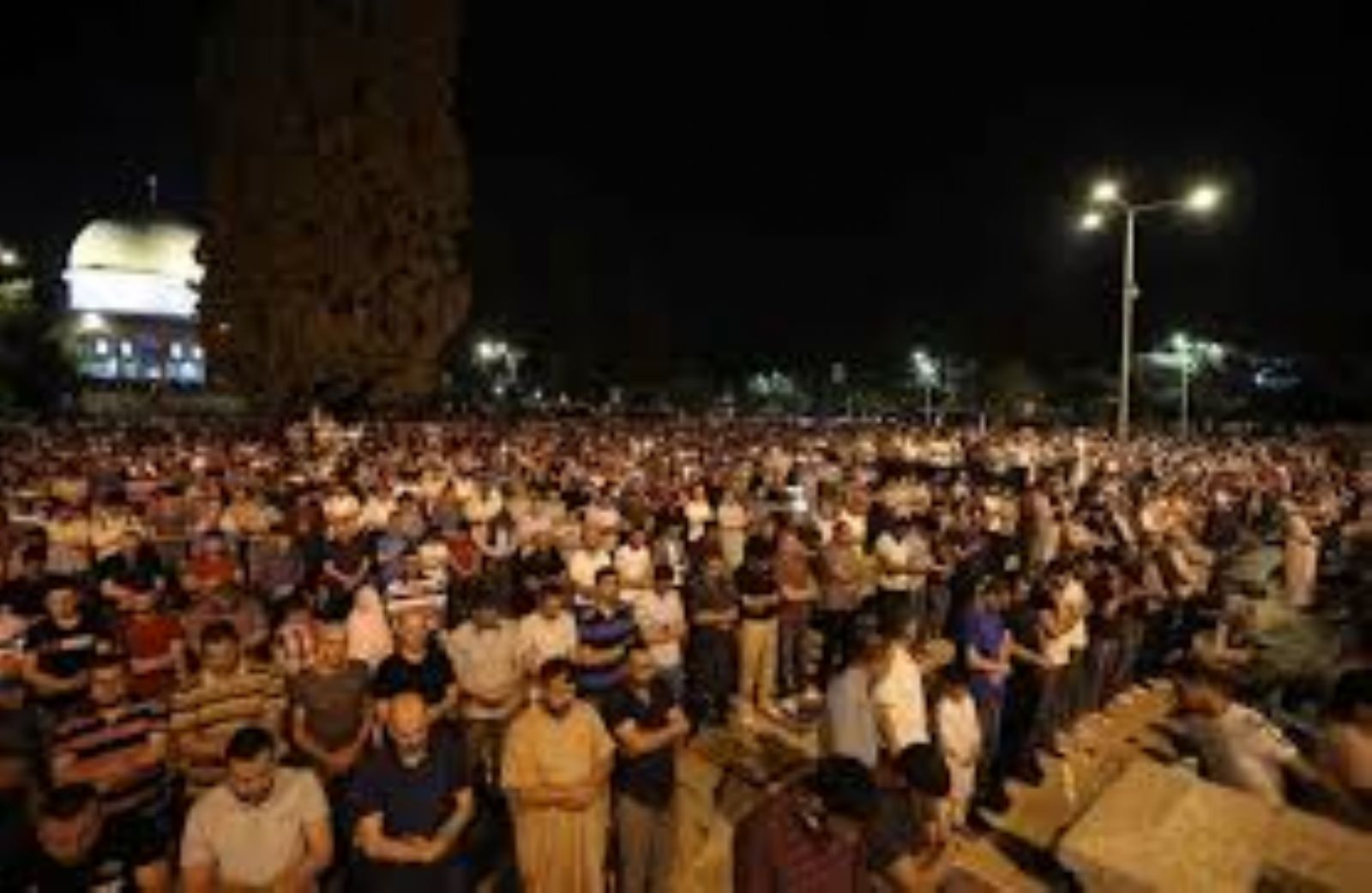 أدى نحو 110 آلاف مُصلٍ من القدس المحتلة وخارجها، الليلة، صلاتي العشاء و"التراويح" في رحاب المسجد الأقصى المبارك، وسط استعدادات ضخمة للجمعة الثانية من شهر رمضان، حسب دائرة الأوقاف الاسلامية في القدس.