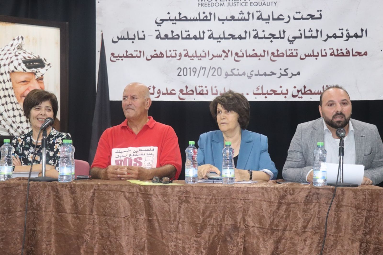 عقدت اللجنة المحلية للمقاطعة في محافظة نابلس شمال الضفة الغربية المحتلة السبت، مؤتمرها الثاني بعنوان "محافظة نابلس تقاطع البضائع الاسرائيلية وتناهض التطبيع".