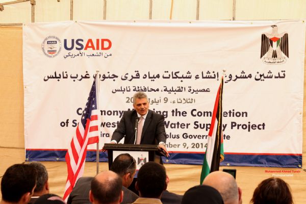 احتفلت السلطة الفلسطينية والوكالة الأمريكية للتنمية الدولية (USAID)، اليوم الثلاثاء 9 أيلول، باستكمال مشروع تزويد قرى جنوب غرب نابلس بالمياه، الذي استثمرت اليو أس أيد من خلاله 4‘7 مليون دولار أمريكي لتمديد شبكات مياه بكميات ونوعية جيدة لأكثر من 8.500 مواطن في قرى عصيرة القبلية ومادما وعوريف لأول مرة في تاريخهم.