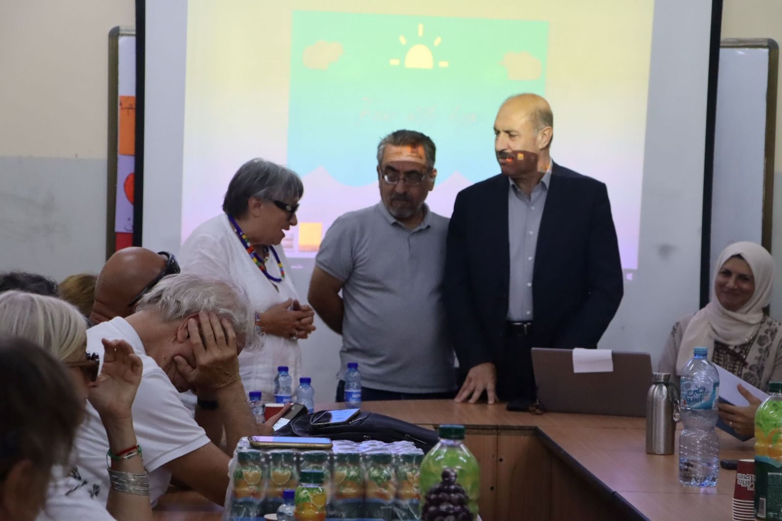 ورحب رئيس الهيئة الادارية لمركز يافا تيسير نصرالله بالوفد الزائر ، وقدم شرحا حول ما يتعرض له الشعب الفلسطيني من عدوان وانتهاكات وتطورات الأوضاع التي تمر بها القضية الفلسطينية، واكد على استهداف الاحتلال المبرمج للمخيمات في شمال الضفة الغربية وخاصة مخيمات جنين وطولكرم والاجتياحات اليومية لمخيمات نابلس وعلى راسها مخيم بلاطة والتخرب للمتلكات والاعتداء على السكان ومحاولة الاحتلال هو محاولات بائسة لشطب قضية اللاجئين. واعطى نصرالله شرحا عن الأنشطة الثقافية والصحية والتعليمية التي ينظمها المركز والدور الذي يقوم به في دعم الإبداع والهوية الفلسطينية وتزويد جيل الشباب بالخبرات والثقافة وسبل الصمود والتحدي، مشيرًا في الوقت ذاته إلى التحديات الكبيرة والصعوبات التي تعيق تنظيم الفعاليات والبرامج الثقافية والصحية وعلى راسها ممارسات الاحتلال ونقص التمويل. مؤكدا على الشراكة التاريخية مع الشعب الايطالي والمتضامنين الايطاليين وعلى راسهم الناشطة والمتضامنه مورغنتيني والتي اعتبرها شريكة الفلسطينيين في رحلة النضال ضد الاحتلال.
