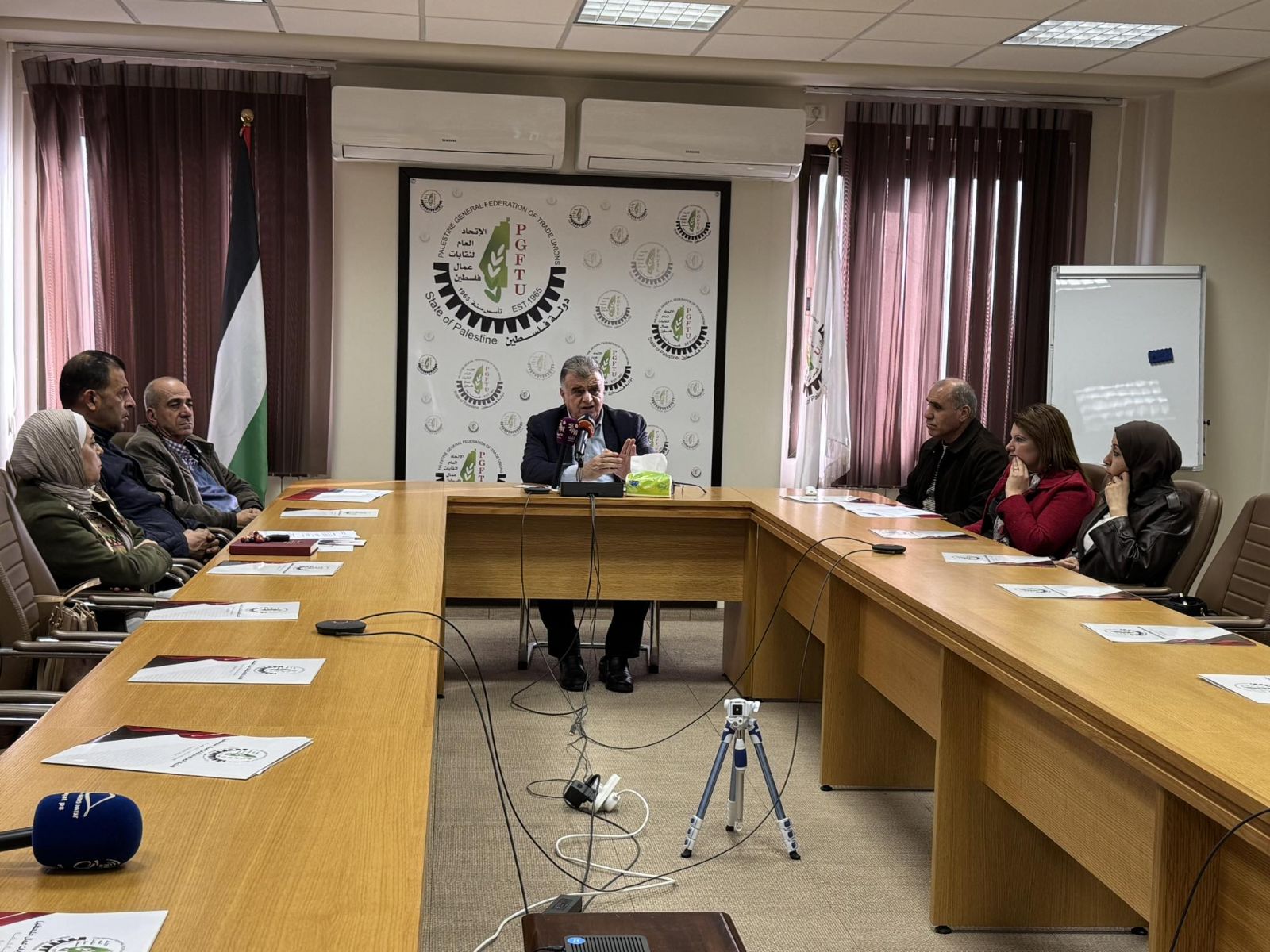 بثَّ الاتحاد العام لنقابات عمال فلسطين، اليوم الإثنين الموافق 2 شباط/فبراير 2026، تقريره السنوي لعام 2025 حول أوضاع العمال الفلسطينيين، وذلك خلال مؤتمر صحفي عقده لاستنكار منع سلطات الاحتلال للأمين العام للاتحاد الدولي للبناء والأخشاب (BWI) أمبيت يوسون، ووفد مرافق من 9 قيادات في الاتحاد الدولي (BWI) من دخول فلسطين.