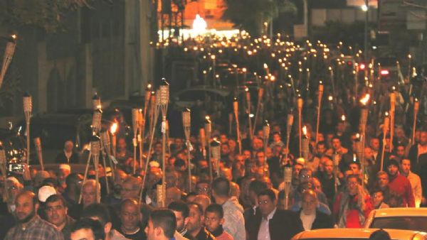 مسيرة مشاعل حاشدة في طمرة احتجاجا على حظر الحركة الإسلامية