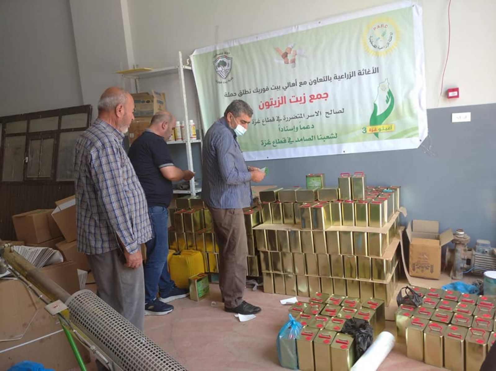 الاغاثة الزراعية بالتعاون مع أهالي بلدة بيت فوريك يواصلون جمع زيت الزيتون لصالح الأسر المتضررة في قطاع غزة