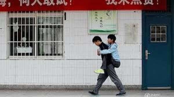 دأب شاب صيني على حمل صديقه المعاق على ظهره يومياً ذهاباً وإياباً من مسكنهما إلى المدرسة طوال 3 سنوات، في مثال حي للصداقة الحقيقية
