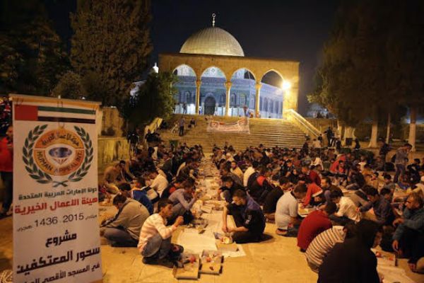 وتتولى عدة مؤسسات خيرية إماراتية تقديم وجبات الإفطار والسحور وتوزيع السلال الغذائية على الأسر المقدسية الفقيرة.