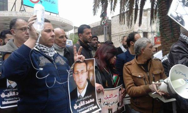 وتمت الوقفة بالتعاون مع لجنة التنسيق الفصائلي، ونادي الأسير، ونقابة الصحفيين، حيث دعا المشاركون في الوقفة الجهات المسؤولة للتدخل سريعا لإنقاذ حياة القيق.