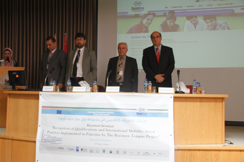 وتأتي هذه الورشة ضمن فعاليات مشروع RecoNow - Tempus )) للتعرف على إجراءات الإعتراف بالمؤهلات العلمية في بلدان الجوار الأوروبية الجنوبية، حيث يهدف المشروع إلى تحسين وزيادة جودة حركة وتنقل الطلاب ضمن أنظمة التعليم العالي الشرق أوسطية والأوروبية وبدعم من برنامج تيمبوسTempus الممول من الإتحاد الأوروبي .