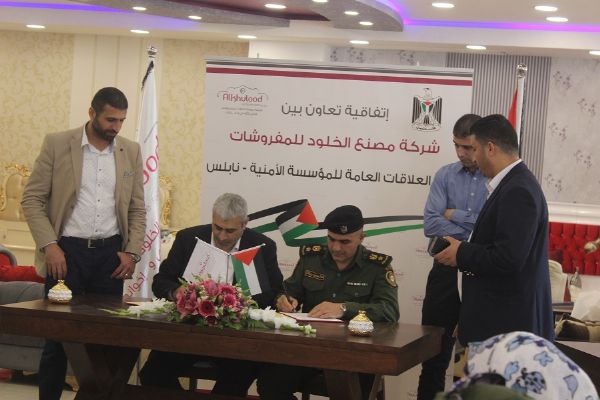 ووقع الاتفاقية فراس قتلوني المدير العام لشركة مصنع الخلود للمفروشات، وعن لجنة العلاقات العامة للمؤسسة الأمنية/نابلس المقدم كمال دويكات بحضور أعضاء اللجنة وعدد من الإعلاميين بينهم ادهم خروبي المدير التنفيذي لشركة ديارنا لإدارة الحدث المستشار الإعلامي لشركة مفروشات الخلود.