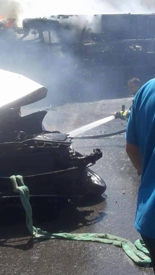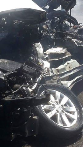 أصداء- أعلنت جمعية الهلال الأحمر الفلسطيني،قبل قليل، وفاة خمسة أشخاص بينهم سيدتين جراء انقلاب شاحنة على مركبة صغيرة في حادث سير مروع، وقع على الشارع الالتفافي قرب مدينة الخليل.وذكرت مصادر محلية أن الحادث وقع بين شاحنة ومركبة من نوع "كيا"، حيث وقعت الشاحنة على المركبة، الأمر الذي أدى اشتعال النيران في المركبة ووفاة كل من فيها.
