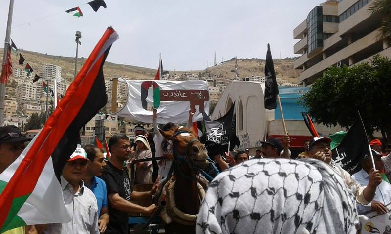 أصداء- مي الزبن- نظمت الهيئة العليا لإحياء ذكرى النكبة، اليوم الأحد، مهرجانا جماهيريا لإحياء الذكرى 68 للنكبة على دوار الشهداء وسط مدينة نابلس.