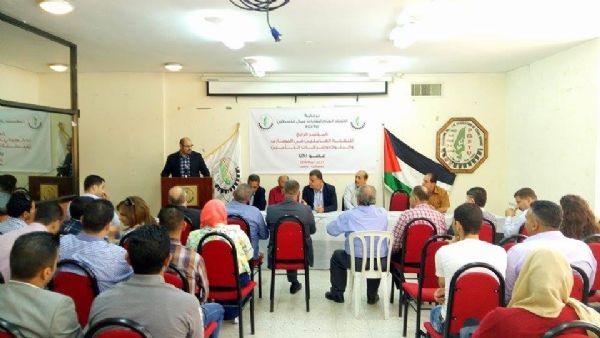 عقدت النقابة العامة للعاملين في المصارف والبنوك وشركات التأمين مؤتمرها الرابع اليوم السبت الموافق 21-5-2016 تحت رعاية الإتحاد العام لنقابات عمال فلسطين وذلك في مقر الإتحاد العام في مدينة نابلس بمشاركة الهيئات الإدارية المنتخبة للنقابة ممثلة عن 10 محافظات بالضفة وبحضور 59 عضواً من أصل 85 عضواً وبعد تأكد لجنة الإشراف من إكتمال النصاب القانوني ممثلة بالسادة عضو الامانة العامة السيد باير سعيد والسيد ابراهيم دراغمه والسيدة عائشة حموضة أعضاء اللجنة التنفيذية والسيد شاهر سعد الأمين العام لأتحاد نقابات عمال فلسطين والسيد نضال البذره رئيس ملتقى رجال الأعمال في نابلس والعديد من الشخصيات الوطنية والنقابية بدأت أعمال المؤتمر بتلاوة الفاتحة على ارواح شهداء فلسطين وروح النقابيين الدكتور خالد عبد الحق والنقابية سماح كنعان ، ثم تلاه النشيد الوطني الفلسطيني .