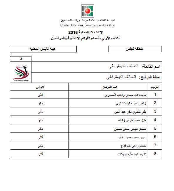 اطلع على القوائم المترشحة لانتخابات بلدية نابلس