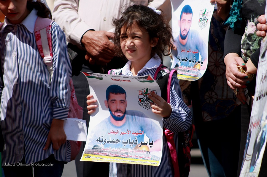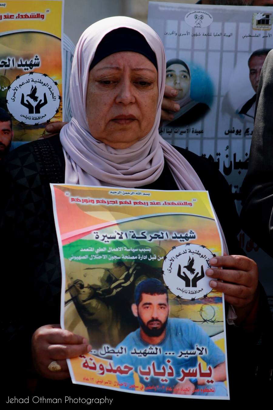 ورفع المشاركون صور الأسير الشهيد حمدونة، كما هتفوا للحركة الأسيرة وحق الأسرى في نيل الحريّة التي سلبهم إياها الاحتلال الإسرائيلي منذ سنوات طويلة مؤكدين على أنهم يريدون أبنائهم أحياء وليس جثث .