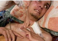 ويقول الطبيب المشرف على حالة منتصر الأخصائي مظهر دروزة، "تعرض منتصر لإصابة قوية في رأسه مصحوبة بفقدان الوعي وعدم القدرة على التنفس، صحيح أنه تم عمل الإسعاف الأولي له لكن لا فائدة لأن الإسعاف لم يصل إلى موقع الحادث مباشرة بعد وقوعه، مما أدى إلى نقص الأكسجين في الدماغ وإصابة محور الدماغ الرئيسي بضرر"