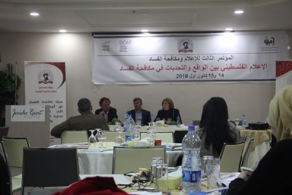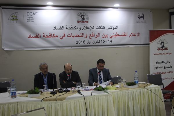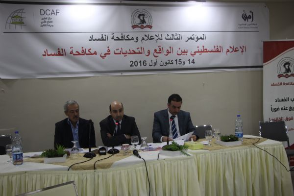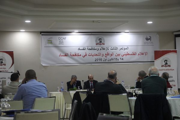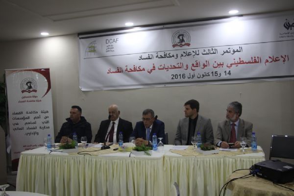 وتناول المحور الأول من المؤتمر تغطية وسائل الإعلام الفلسطيني الرسمي (وفا، وتلفزيون فلسطين) لقضايا الفساد في المجتمع، والذي تحدث به كل من رئيس تحرير " وفا" خلود عساف، ونائب مدير عام الأخبار في تلفزيون فلسطين جواد أبو شيخة، كما تحدث حافظ البرغوثي مدير جريدة الحياة سابقاً عن تجربته الشخصية في كتابته العديد من التحقيقات الاستقصائية والتي تتناول مواضيع هامة وخطرة.