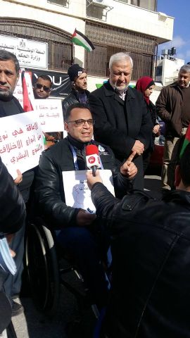 ضمن فعاليات اليوم العالمي للاشخاص ذوي الاعاقة نظمت اللجنة التنسيقية العليا المساندة لذوي الاعاقة والاتحاد العام للاشخاص ذوي الاعاقة – فرع نابلس بالتعاون مع مركز القدس للمساعدة القانونية امس الثلاثاء 20-12-2016 اعتصام امام مديرية الحكم المحلي.