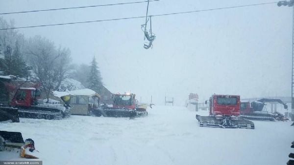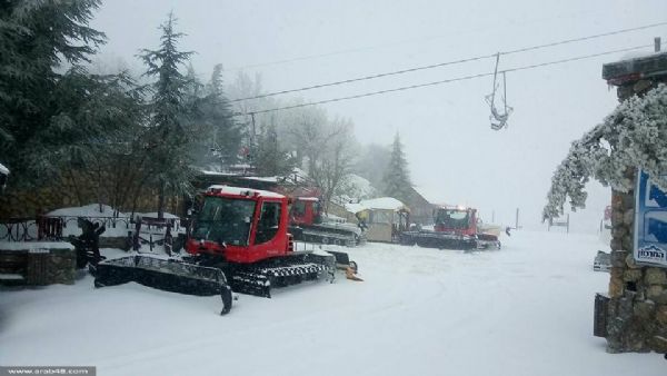 يتواصل تساقط الثلوج على جبل الشيخ في هضبة الجولان السوري المحتل، اليوم الإثنين، وبلغ ارتفاع الثلوج 70 سنتيمترا وانخفضت درجة الحرارة إلى 6 تحت الصفر.