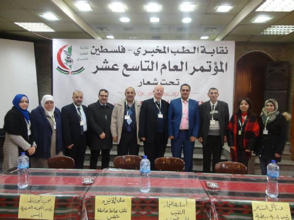 نابلس :- تحت شعار "النهوض بالقطاع الخاص اولويه ملحه للرقي بالخدمات الصحية" عقدت نقابة الطب المخبري مؤتمرها العام التاسع عشر في قاعة "هولي لاند سن" في بلدة سبسطيه التاريخيه وذلك بحضور عنان الاتيرة نائب محافظ محافظة نابلس ممثلة عن المحافظة ود.نائل الشاعر رئيس بلديه سبسطيه ود.عبد الله الاحمد مدير وحدة الاجازة والترخيص في وزارة الصحه ود.اسامه النجار نقيب الطب المخبري في فلسطين ووفد من حركة فتح – اقليم نابلس ورؤساء وأعضاء اللجان الفرعية للنقابة ومن جميع محافظات الوطن والذين يمثلون معا المؤتمر العام .