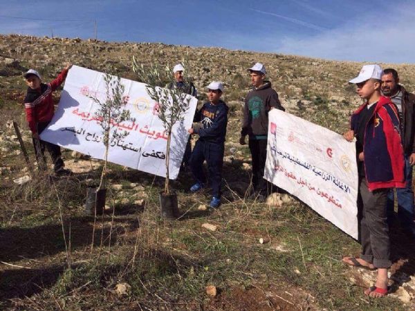 الاغاثه الزراعيه الفلسطينيه تنظم عملا تطوعيا لزراعة اشجار الزيتون في الاراضي المجاوره للكسارات