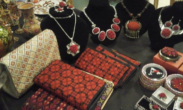 في مجمع نابلس التجاري، معرض نسوي لمنتجات يدوية ومنسوجات ومطرزات، أنتجتها مجموعة من السيدات اللواتي اتخذن من هذه المهارة مهنة يساعدن بها عائلاتهن، ومتعة –رغم التعب- يملأن بها وقت فراغهن.
