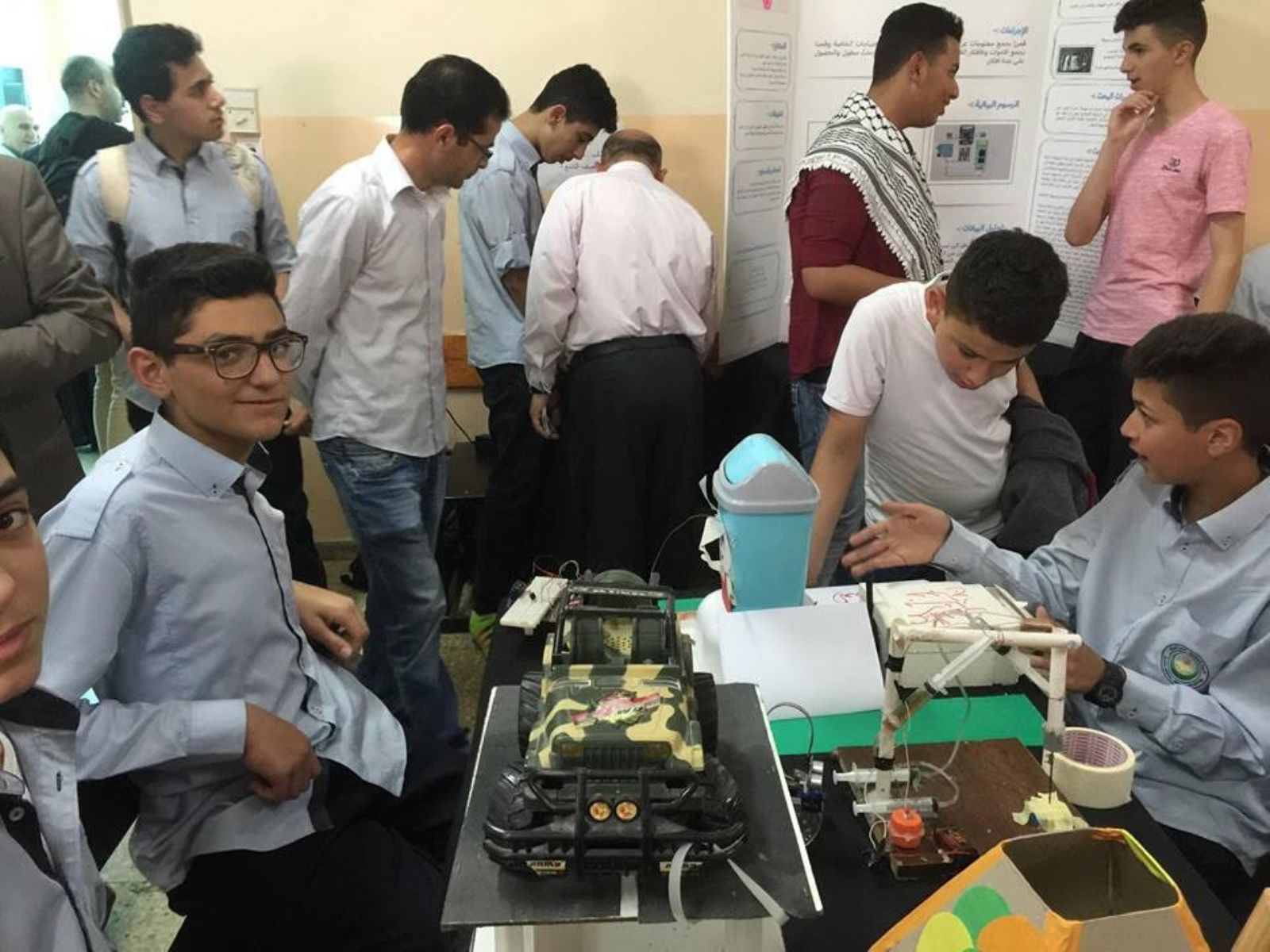 وفي نهاية الحفل قام رئيس الجمعية الدكتور علاء والوفد المرافق بقص شريط افتتاح المعرض العلمي الذي تضمن واحتوى المجالات التكنولوجية والعلمية والثقافية والفنية
