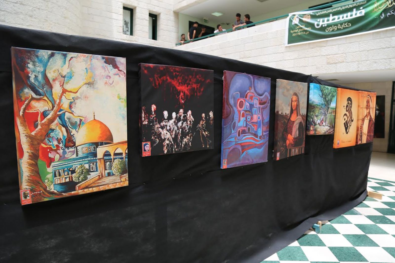 فيما لم يستطع الفنانون العرب والمشاركون من خارج فلسطين من الوصول الى الجامعة للمشاركة في فعاليات المعرض.