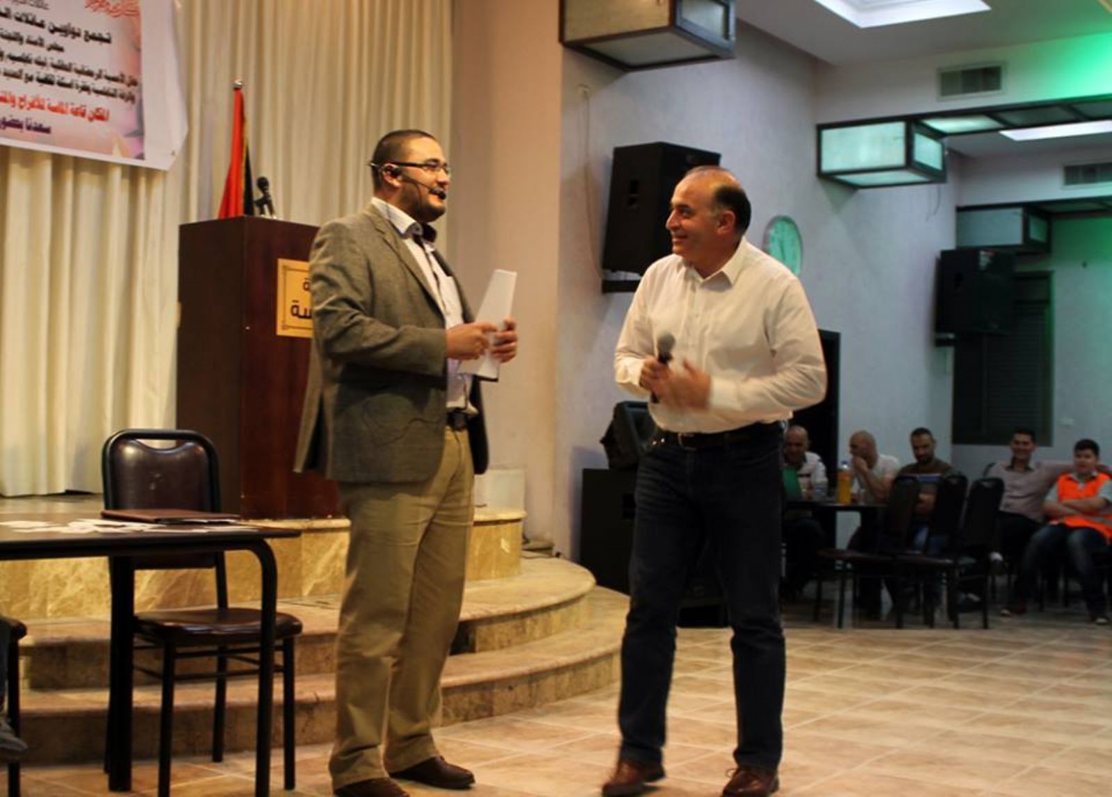 نابلس:أصداء- نظم تجمع دواين عائلات الديار النابلسية سهر ة رمضانية متميزة لعائلات الدواين حيث تخلل الحفل قراء ة القرآن الكريم وفرقة عراضة قامت بتقديم الاعاني النابلسية القديمة. وعقب ذلك ثم جرت فقرة الحكواتي قدمها المبدع الفنان طاهر باكير ومن ثم فقرة سؤال وجواب قدمها الاعللامي المبدع عنان الشامي ومسرحية هادفة قام بها شاب من عائلة استيتية ومن اخراج الاستاد اسامة ملحس والذي قدم ايضا مسابقة رائعة للحاضرين و قام تجمع الدواوين بتقديم الهدايا والحضور . علما بان الامسية من تحضير واعداد اللجنة الشبابية لتجمع الدواوين.